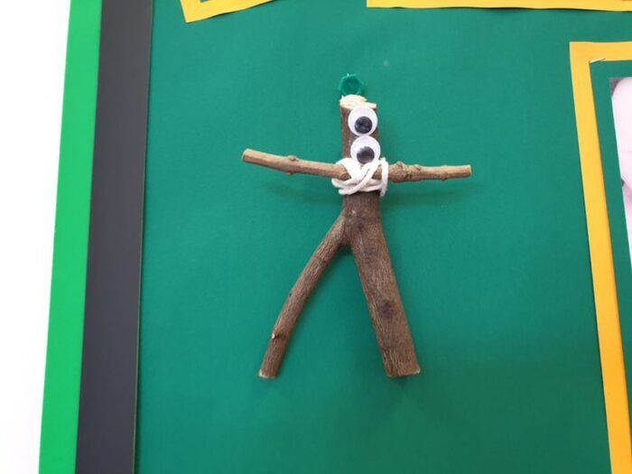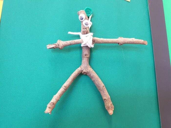 This is artwork that can be made using natural materials which they can find in their environment. These could be pictures or modelling mud faces or stick men. Depending on the age and ability of the children, pupils may learn different knots and how to use other tools safely before making their stick men.