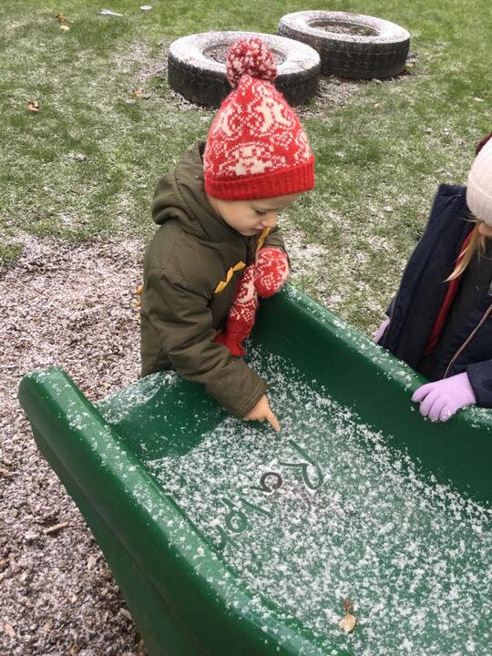 In nursery we LOVE playing outdoors and we are very fortunate to have a large outdoor area! The outdoors environment offers the opportunity for children to make sense of the outdoor world around them. The outdoor environment can also help with fine and gross motor skills, all round physical development and improved knowledge and understanding of the world.